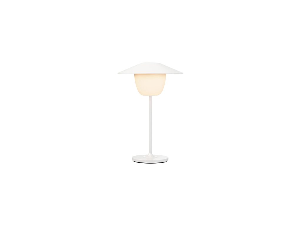 ANI LAMP mini v bílém provedení je přenosná LED lampa inspirovaná pouličními lampami. Nabízí intuitivní ovládání pomocí dotykového kroužku na stínítku, kterým lze zapínat, vypínat a volit mezi dvěma úrovněmi jasu. Lze ji postavit na stojan, zavěsit nebo použít jako stolní lampu.